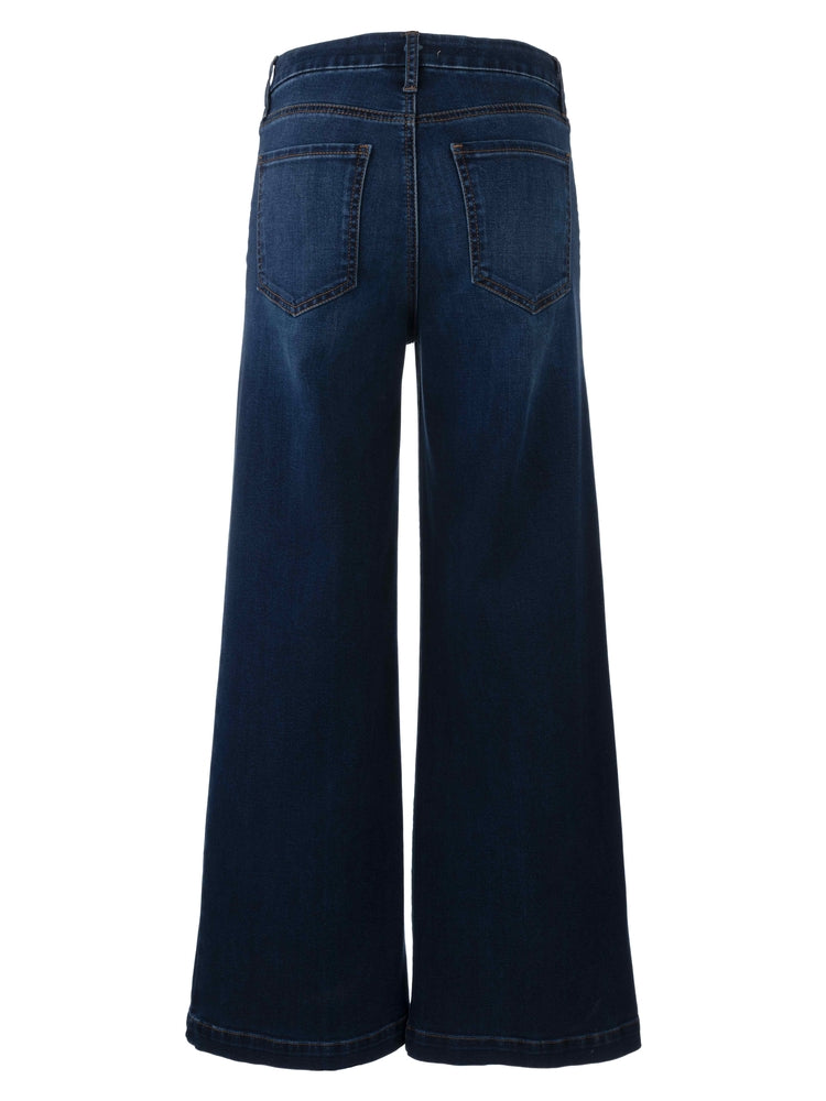 Step up your style with these high-rise, wide-leg jeans in a sleek dark wash, finished with standout front patch pockets. Made from super stretchy material, they offer a comfortable fit that moves with you while keeping a structured, on-trend silhouette.