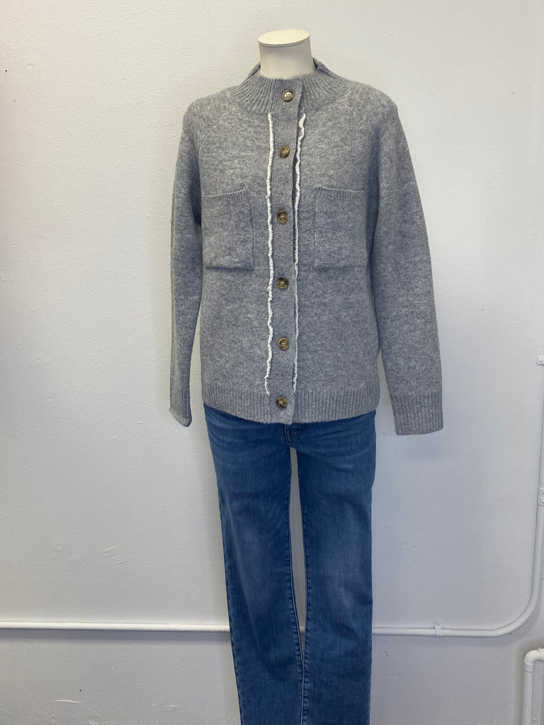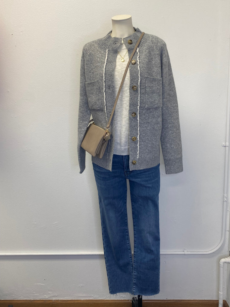 Navy White Knit Pocket Cardigan