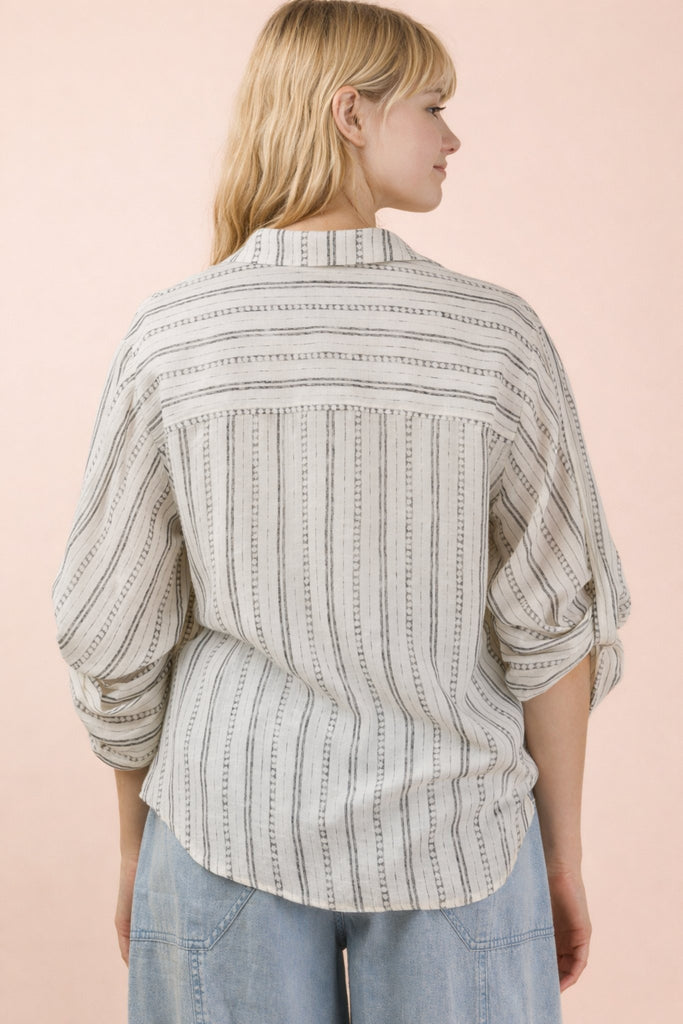 Roll Up Half Sleeve Dotted Stripe Blouse