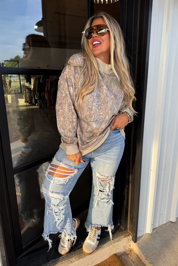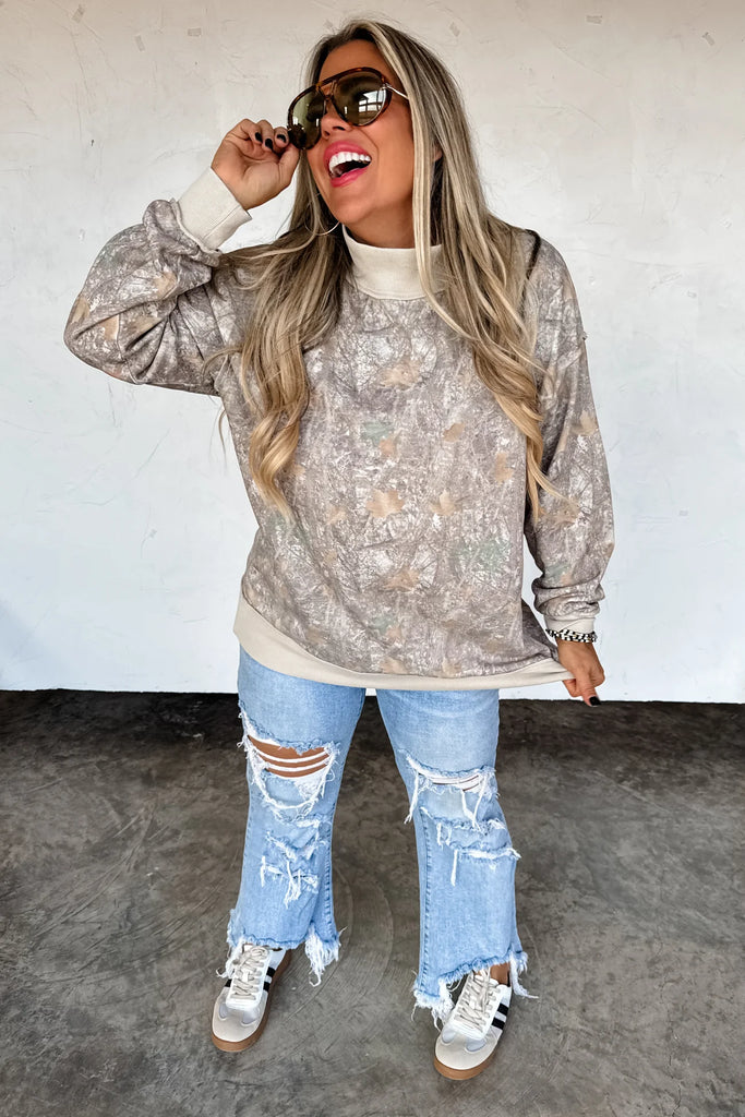 Mock Neck Camo Sweatshirt